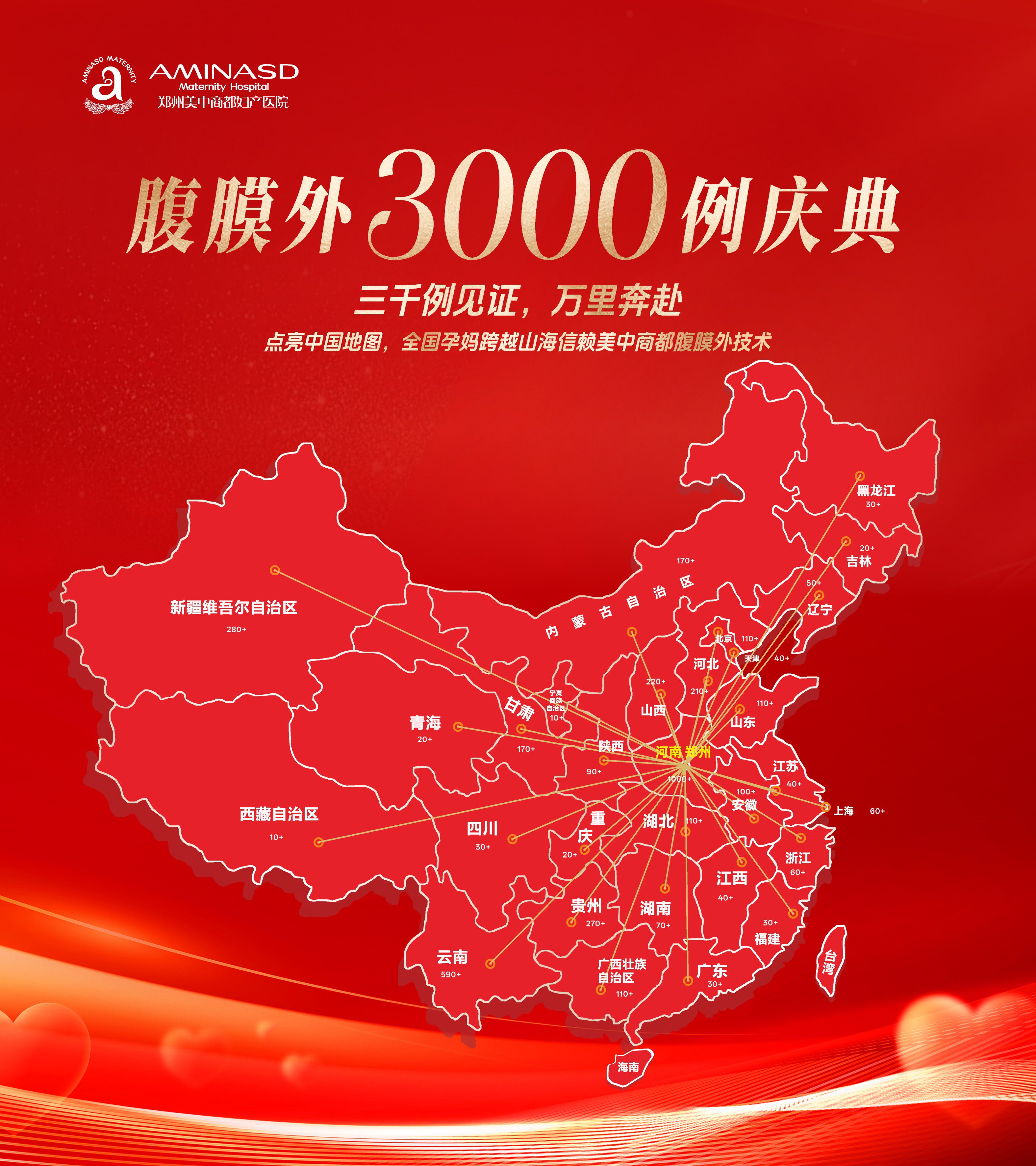 活动现场,一面贴满红色爱心标记的“中国地图”格外醒目。这些标记代表着那些跨越山海、从全国各地奔赴而来的孕妈们的家乡——从东北雪原到南海之滨,从西部边陲到东部沿海,三千例见证,万里奔赴,她们用坚定的选择点亮了地图,也点亮了郑州美中商都妇产医院在腹膜外剖宫产领域的金字招牌。